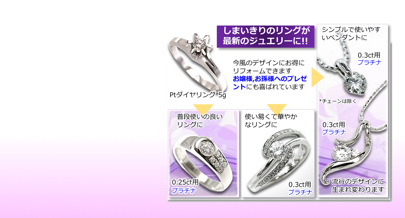 眠っているジュエリーをお買い得価格で最新のデザインに生まれ変わらせます。